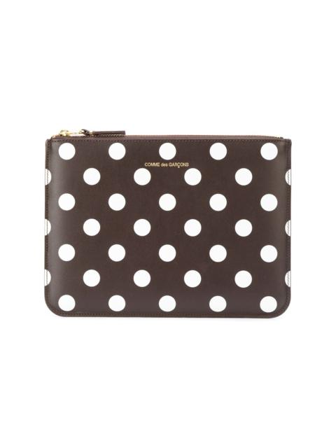 polka dot coin purse Grey and white calf leather polka dot coin purse from Comme Des Garcons Wallet. This item is unisex. Imported Composition Calf Leather 100% SIZE & FIT Measurement WIDTH 6.29 in(16 cm) LENGTH 8.66 in(22 cm) DEPTH 0.39 in(1 cm)