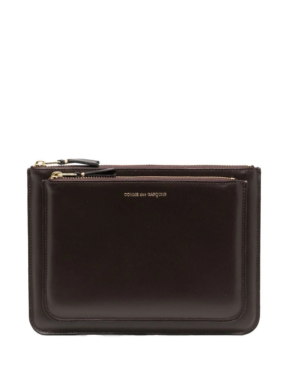 double-compartment leather wallet chocolate brown calf leather gold-tone logo lettering two zip-fastening compartments gold-tone hardware Imported Composition Outer: Calf Leather 100% SIZE & FIT Measurement LENGTH 8.66 in(22 cm) WIDTH 6.29 in(16 cm)