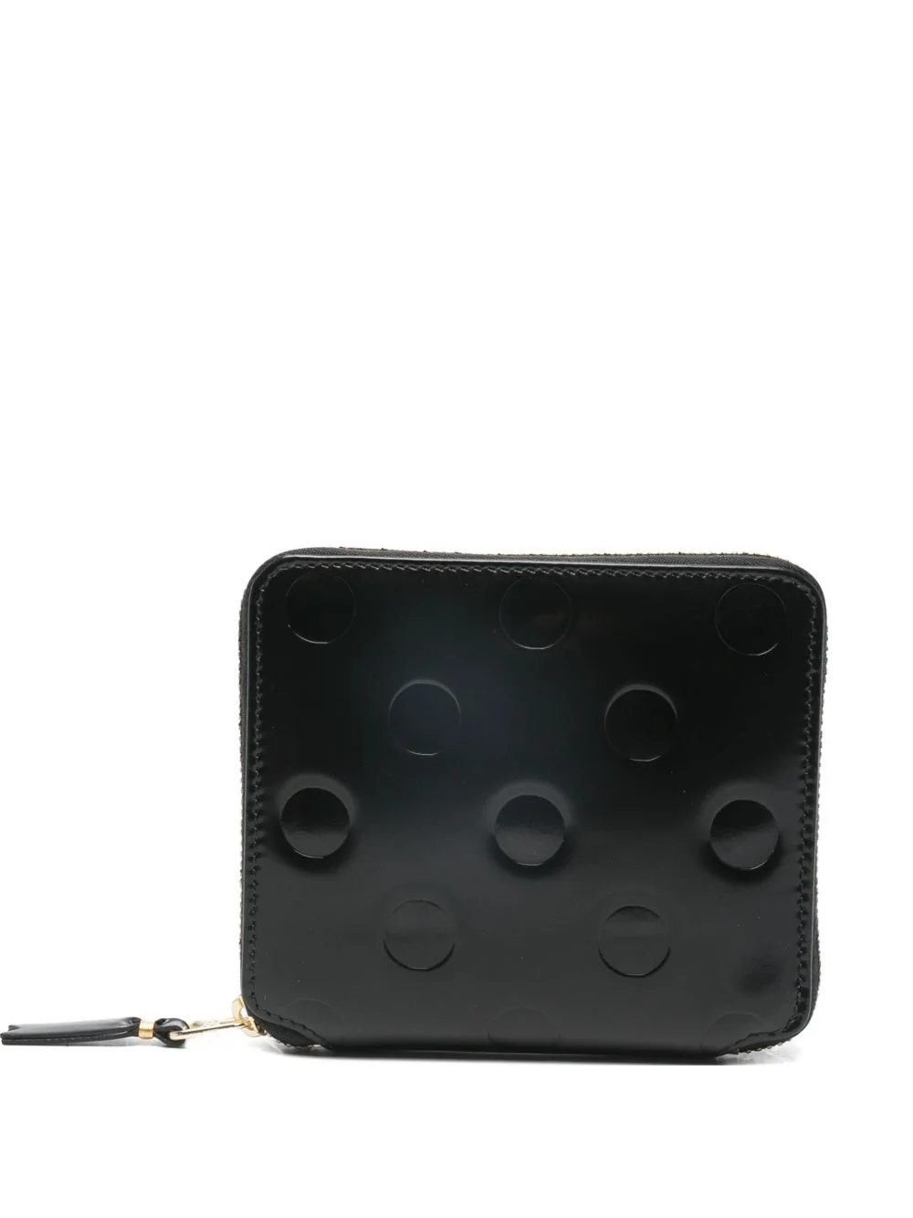 embossed dot wallet Highlights - Black - Embossed dot detail - Zip fastening Imported Composition Outer: Patent Calf Leather 100% SIZE & FIT Measurement DEPTH 0.78 in(2 cm) LENGTH 4.72 in(12 cm) WIDTH 3.93 in(10 cm)