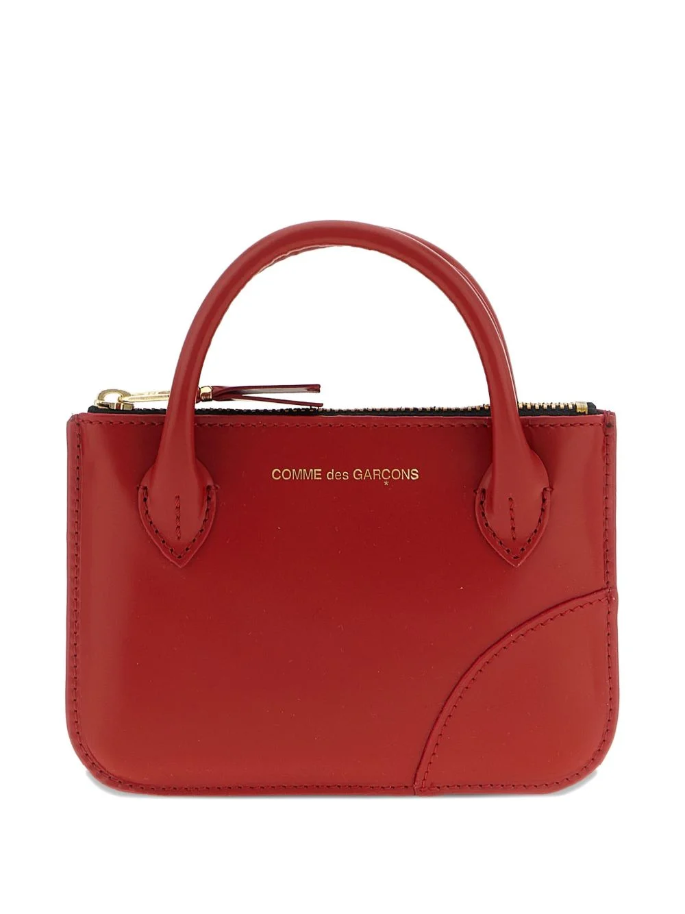 Handles Line logo leather mini bag Highlights - Red - Logo detail - Two fixed handles - Top zip closure - Leather Imported Composition Outer: Calf Leather 100% SIZE & FIT Measurement HEIGHT 4.13 in(10.5 cm) WIDTH 5.7 in(14.5 cm)