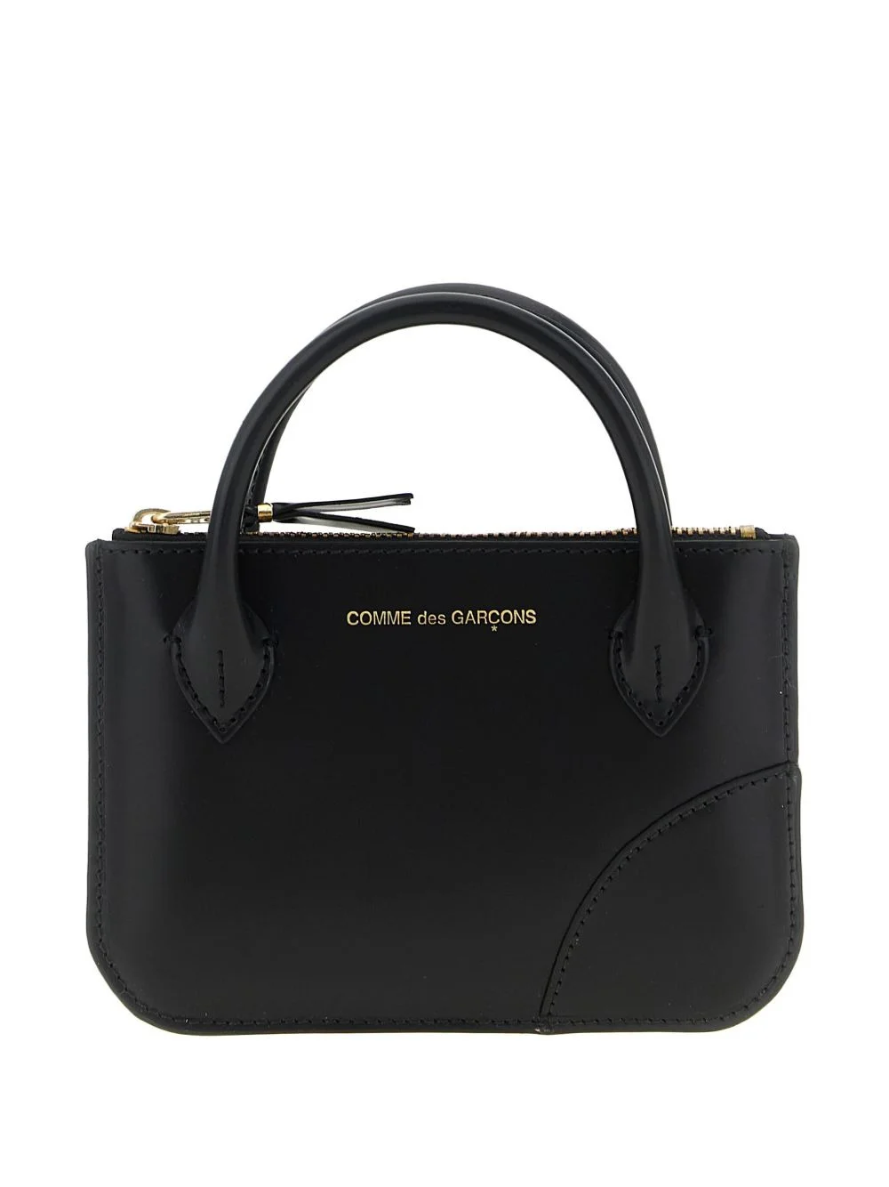 Handles Line logo mini bag Highlights - Black - Leather - Gold-tone logo - Two fixed handles - Top zip closure Imported Composition Outer: Calf Leather 100% SIZE & FIT Measurement HEIGHT 4.13 in(10.5 cm) WIDTH 5.7 in(14.5 cm)