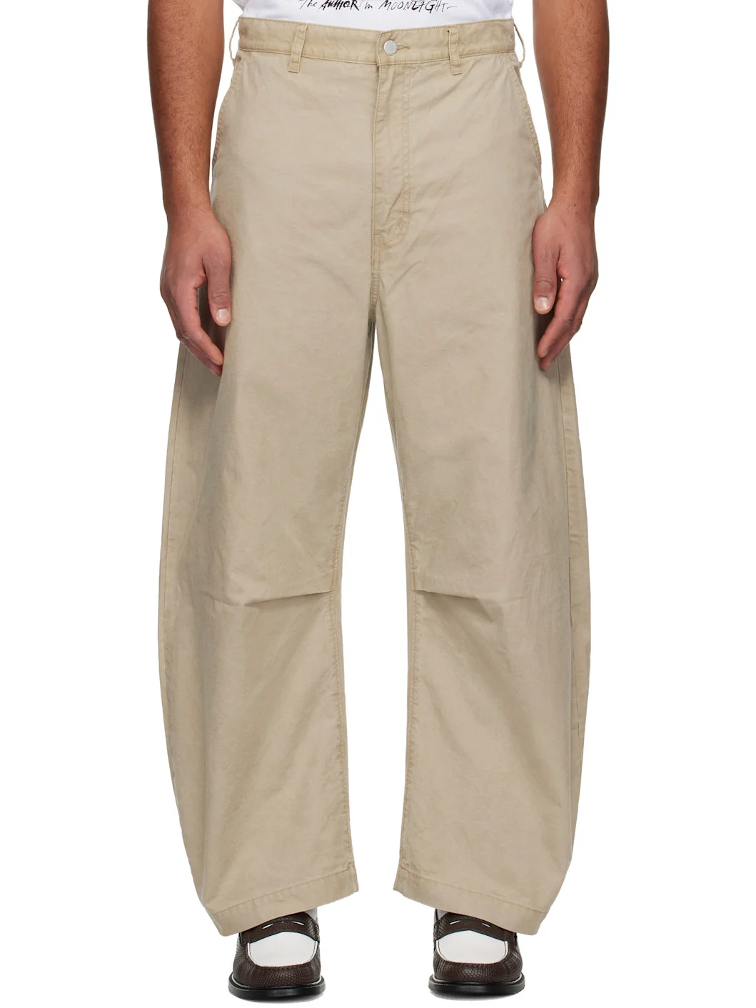 Peached cotton canvas trousers. · Belt loops · Four-pocket styling · Zip fly · Pleat at knees · Curved outseams Supplier color: Beige 100% cotton. Made in Japan 252057M191018