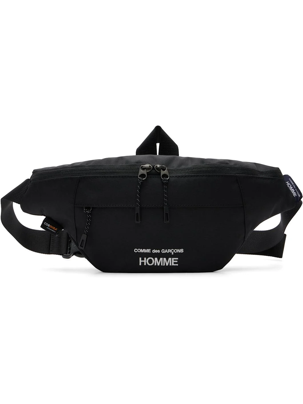 CORDURA canvas messenger bag. · Adjustable crossbody strap with buckle · Embroidered logo and zip pocket at face · Logo flag at side · Two-way zip closure · Zip pocket at interior · Twill lining · H6.5" x W14" x D4" Supplier color: Black Textile. Made in Japan 252057M170001