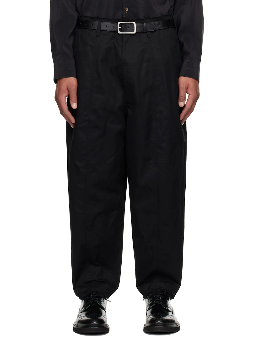 Cotton twill trousers. · Raw edge at waistband and cuffs · Belt loops · Four-pocket styling · Zip fly · Central seam at legs Supplier color: Black 100% cotton. Made in Japan 252057M191012