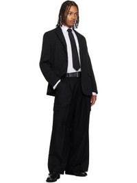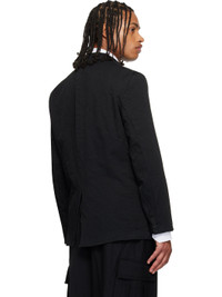 Serge blazer. · Notched lapel · Button closure · Welt pocket at chest · Flap pockets at waist · Surgeon's cuffs · Central vent at back hem · Welt pockets at interior · Full satin lining Supplier color: Black 100% polyester. Made in Japan 252057M195006