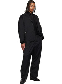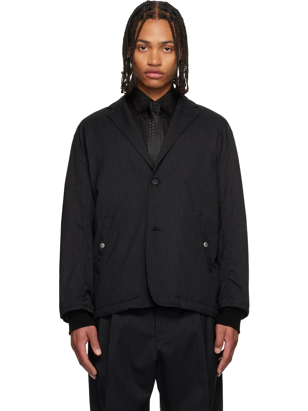 Padded wool-blend herringbone twill blazer. · Notched lapel · Button closure · Welt pockets at waist · Inset rib-knit cuffs · Cinch tabs at back hem · Welt pockets at interior · Full satin lining Supplier color: Black Body: 50% wool, 50% polyester. Trim: 60% acrylic, 40% wool. Fill: 100% polyester. Lining: 100% cupro. Made in Japan 252057M195007