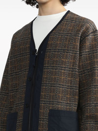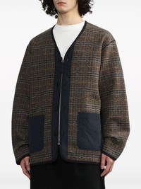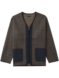check-pattern zip-up jacket Highlights - Brown/navy blue - Wool blend - Check pattern - V-neck - Front zip fastening - Drop shoulder - Long sleeves - Two front patch pockets - Straight hem Imported Composition Wool 80%, Nylon 20% Washing instructions Read Manufacturer Guidelines