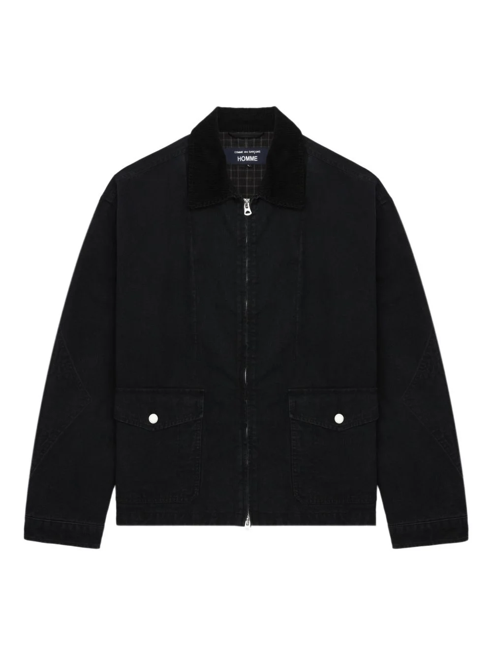 corduroy-collar cotton jacket Highlights - Black - Cotton construction - Corduroy collar - Zip front fastening - Angled pockets - Snap button closure pockets Imported Composition Cotton 100% Washing instructions Read Manufacturer Guidelines