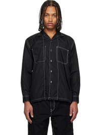 Cotton broadcloth shirt. · Spread collar · Button closure · Patch pocket at chest · Vented hem · Buttoned barrel cuffs · Twin pleats at back yoke · Contrast stitching in white Supplier color: Black 100% cotton. Made in Japan 252057M192009
