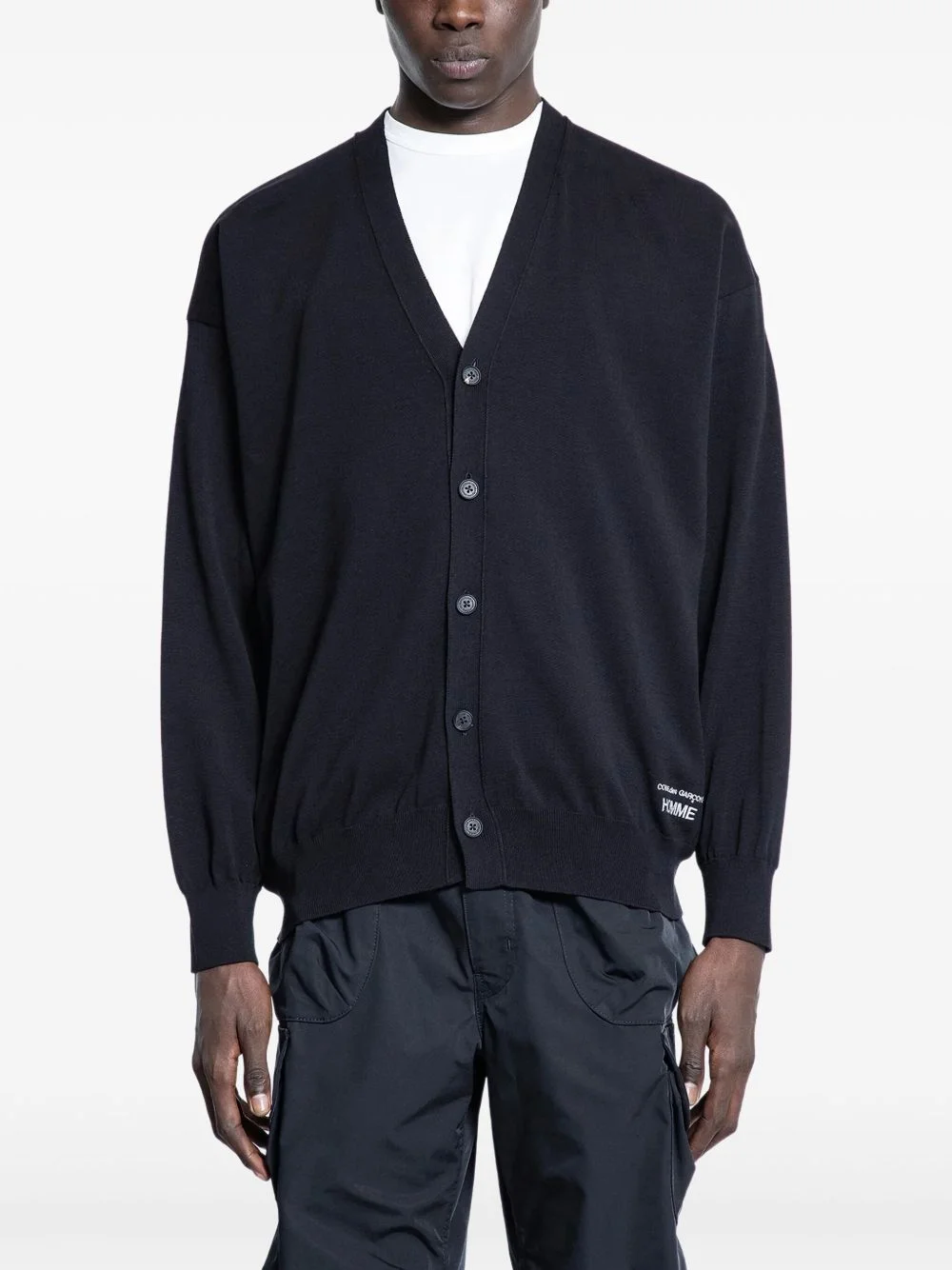 logo-detail cardigan Highlights - Black - Logo detail - V-neck - Front button fastening - Long sleeves - Ribbed cuffs Imported Composition Cotton 100% Washing instructions Read Manufacturer Guidelines