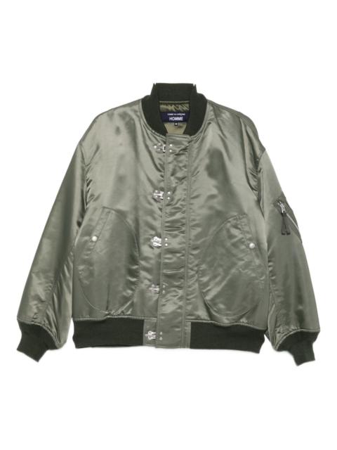 satin-finish bomber jacket Highlights - Black - Satin finish - Multiple button fastenings - Welt pockets - Ribbed cuffs - Zip pocket Imported Composition Nylon 65%, Cotton 35% Washing instructions Read Manufacturer Guidelines