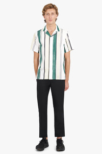 This black Cotton Ramie Pant is designed for optimal comfort and durability. It features a zipper fly and button fastening for secure closure, as well as side slit and back pockets for versatile storage options. The non-stretchy fabric and tapered leg design provide a sleek, professional look. Fabrication: 59% Cotton, 41% Ramie. Size and Fit Nat: Model is 189cm/6’02” and is wearing a size S Model Measurements: Bust: 96.5cm, Waist: 78cm, Hips 89cm Runs Large we recommend sizing up Measurements S: Waist 86cm, Hip 94cm, Length 97cm M: Waist 90cm, Hip 98cm, Length 97cm