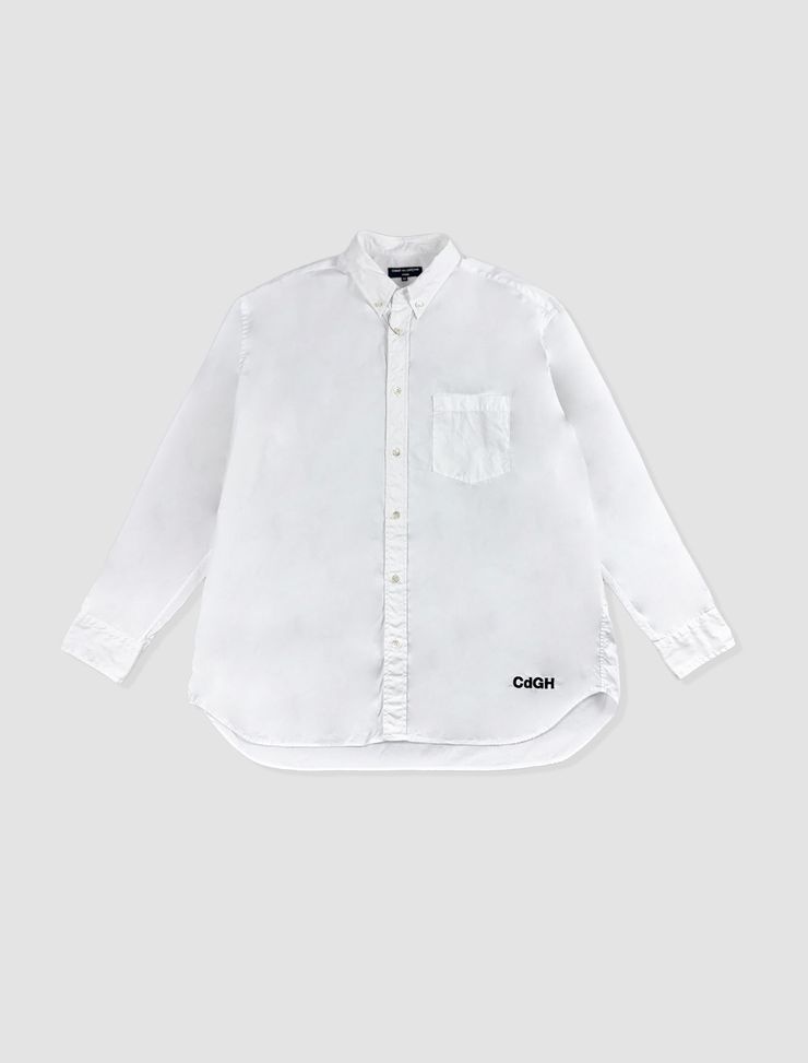 Blue oxford shirt, cotton, poplin weave, classic collar, front button fastening, low-shoulder sleeves, long sleeves, buttoned hems, curved hem and patch pocket on chest. Product Reference Code: HL-B009-W23 2
