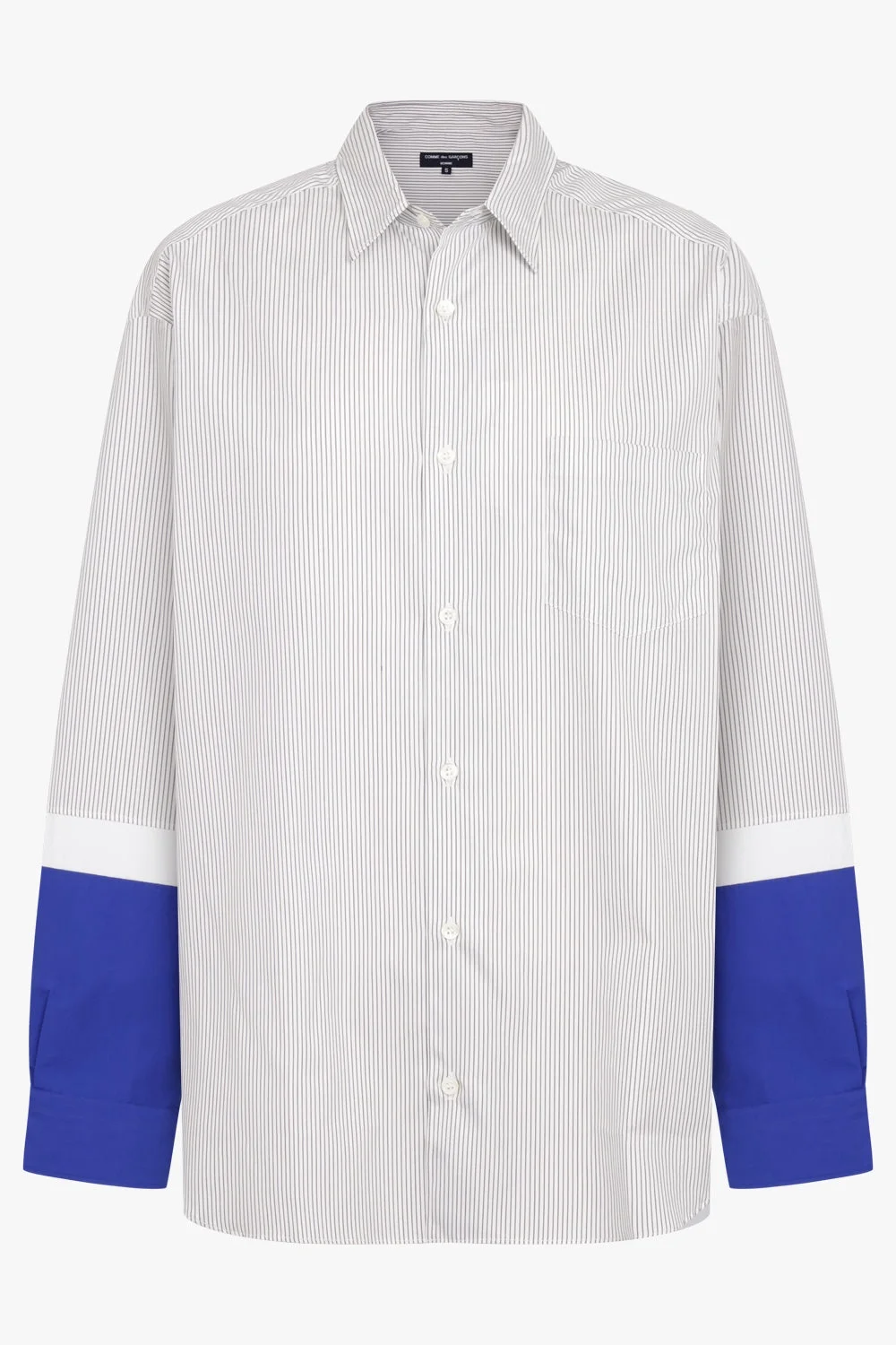 This shirt from Comme des Garcons Shirt is made from breathable cotton poplin. It has a slim silhouette and is finished with an applique patchwork on the bottom half of the sleeves. Fabrication: 100% Cotton Size and Fit Nat: Model is 189cm/6’02” and is wearing a size S Model Measurements: Bust: 96.5cm, Waist: 78cm, Hips 89cm True to size Measurements S: Bust 116cm, Waist 116cm, Hip 116cm, Length 79cm M: Bust 118 cm, Waist 118cm, Hip 118cm, Length 79cm