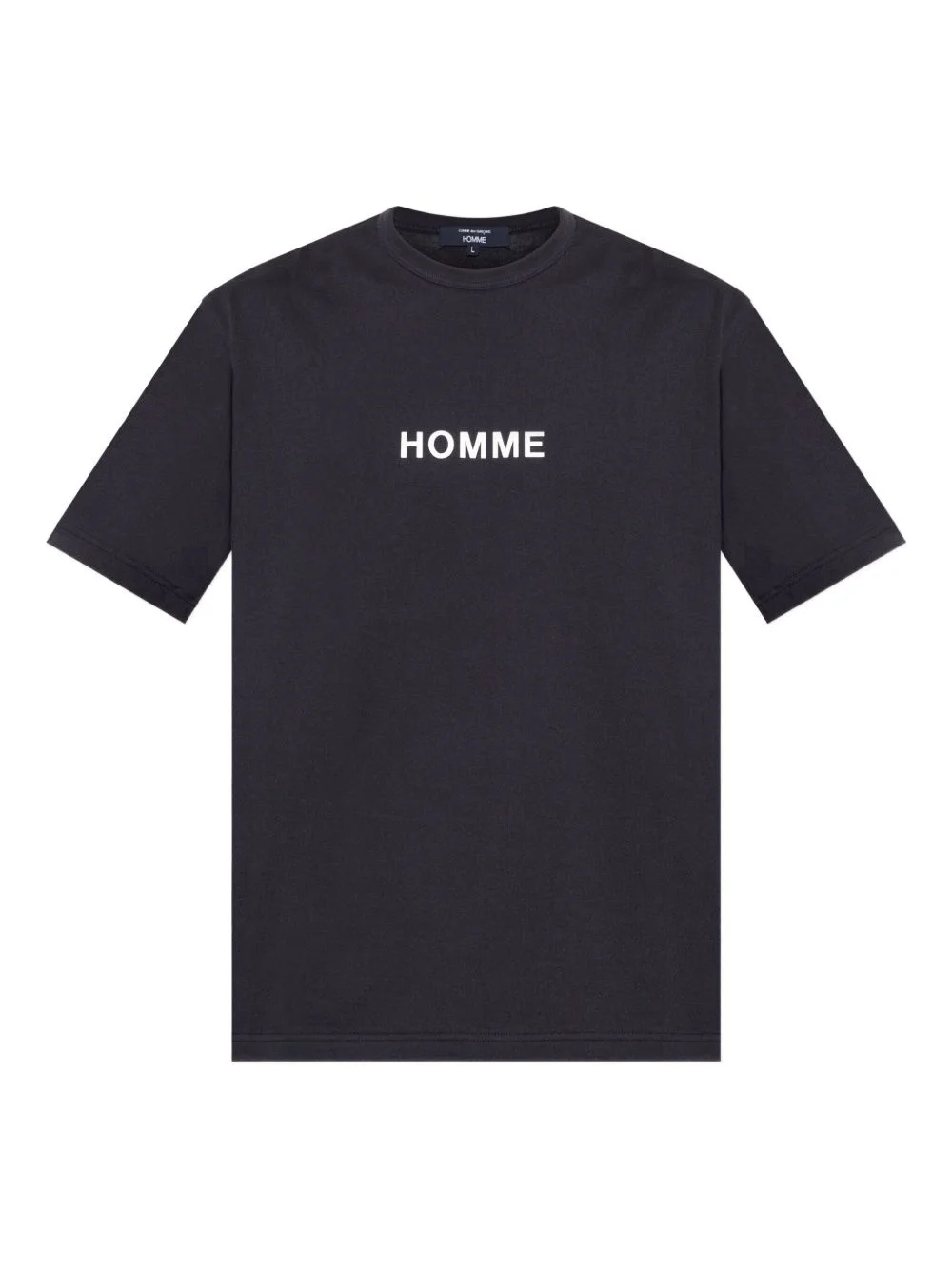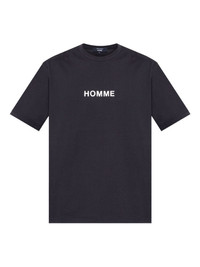 cotton T-shirt Highlights - Dark blue - Short sleeves - Crew neck - Cotton - Homme lettering Imported Composition Outer: Cotton 100% Washing instructions Read Manufacturer Guidelines