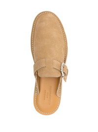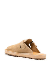 decorative-buckle leather slides Highlights - Beige - Leather - Decorative buckle detail - Round toe - Slip-on style - Branded footbed - Flat rubber sole Imported Composition Sole: Rubber 100% Outer: Leather 100% Lining: Leather 100% SIZE & FIT Measurement Sole height 0.98 in(2.5 cm)