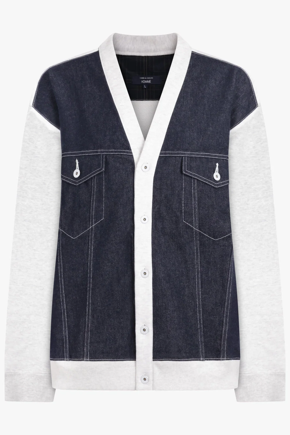 L/S CARDIGAN SWEATSHIRT WITH DENIM VEST OVERLAY | WHITE/INDIGO