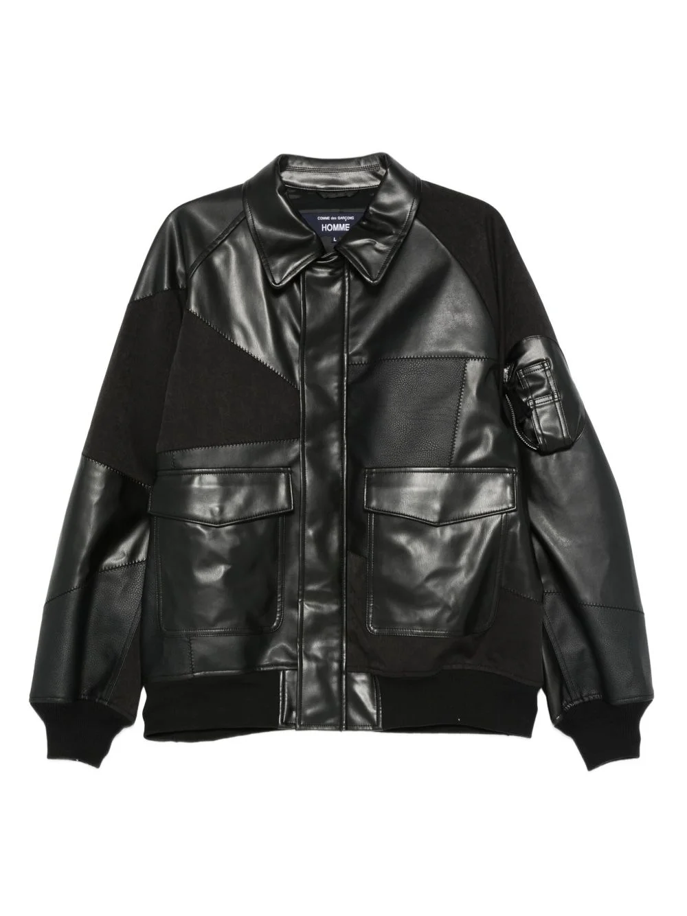 leather bomber jacket Highlights - Black - Front zip fastening - Long sleeves - Side flap pockets Imported Composition Fabric 100%, Calf Leather 100% Washing instructions Read Manufacturer Guidelines