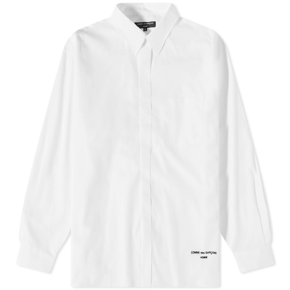A modern take on a wardrobe classic. Cut from lightweight cotton and designed with a boxy fit, this crisp white shirt from Comme des Garçons Homme is finished with immaculately embroidered branding at the hem. - 100% Cotton - Hand Wash Warm - Button Closure - Embroidered Branding - Made in Japan