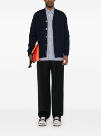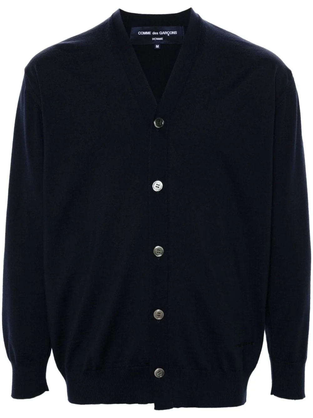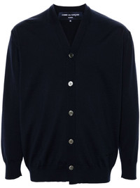 logo-embroidered wool cardigan Highlights - Navy blue - Wool - Fine knit - V-neck - Long sleeves - Embroidered logo to the hem - Ribbed cuffs and hem - Front button fastening Imported Composition Wool 100% SIZE & FIT Model measurements Height 6 ft 2 in(1.88 m) Bust/Chest 35.03 in(89 cm) Hips 35.82 in(91 cm) Waist 27.95 in(71 cm) FittingInformation Designed for a relaxed fit, this piece allows for comfort and movement when worn The ribbed hem offers a close, comfortable fit Made with a midweight knit, this piece offers some stretch This piece fits true to size – take your usual size