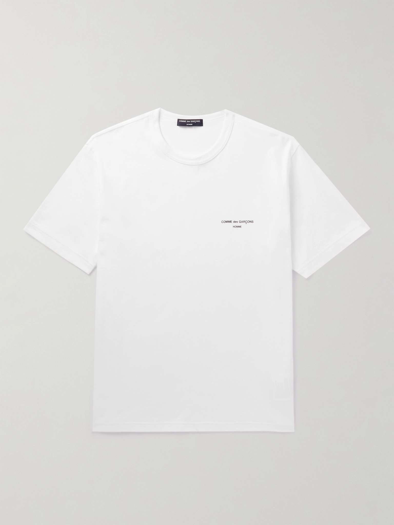 Comme des Garçons HOMME - the label's first diffusion line - was launched in 1978 with a collection of timeless, versatile staples. As classic as it gets, this T-shirt has been made in Japan from lightweight, breathable cotton-jersey and printed at the chest with a signature logo. Small to size. See Size & Fit notes. Size & Fit - Size 1 = XS, 2 = S, 3 = M, 4 = L and 5 = XL - Fits small to size. Take one size larger than normal - Lightweight, stretchy fabric - Model is shown wearing a 3 - Model measures: chest 36"/ 92cm, height 6'1"/ 185cm Details & Care - White and black cotton-jersey - 100% cotton - Hand wash - Made in Japan