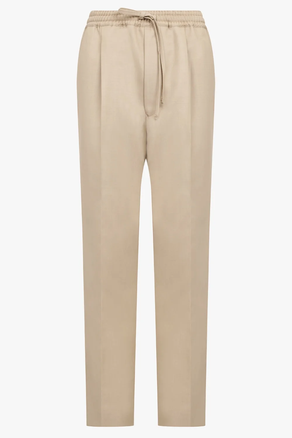 Crafted from a blend of wool and mohair, these twill pants feature a single pleat and a straight fit. The closure is made with a concealed zipper and drawstring, while the pants also include side slit pockets and back pockets. Fabrication: 50% Wool, 50% Mohair Size and Fit Nat: Model is 189cm/6’02” and is wearing a size S Model Measurements: Bust: 96.5cm, Waist: 78cm, Hips 89cm True to size Measurements S: Waist 80cm, Hip 100cm, Length 96cm M: Waist 84cm, Hip 104cm, Length 96cm