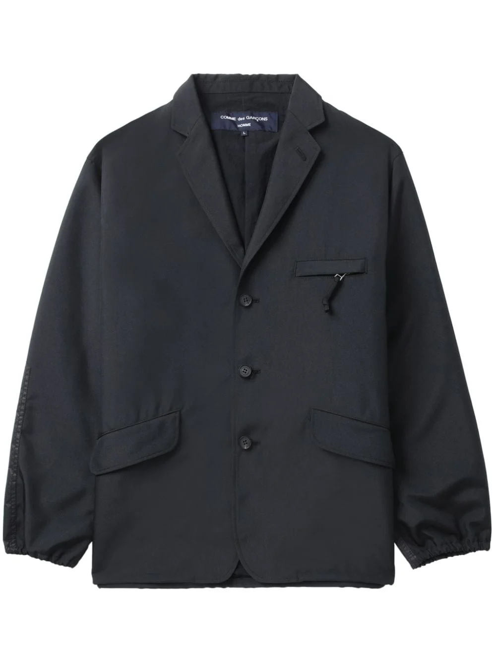 notched-collar single-breasted blazer Highlights - Charcoal grey - Notched collar - Front button fastening - Two front flap pockets - Chest welt pocket - Long sleeves - Elasticated cuffs - Straight hem Imported Composition Body: Polyester 100%