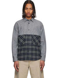 Cotton poplin and flannel shirt. · Paneled construction · Stripes and check pattern throughout · Spread collar · Button closure · Patch pockets at front · Shirttail hem · Adjustable buttoned barrel cuffs Supplier color: Navy/White/Gray/White 100% cotton. Made in Japan 252057M192007