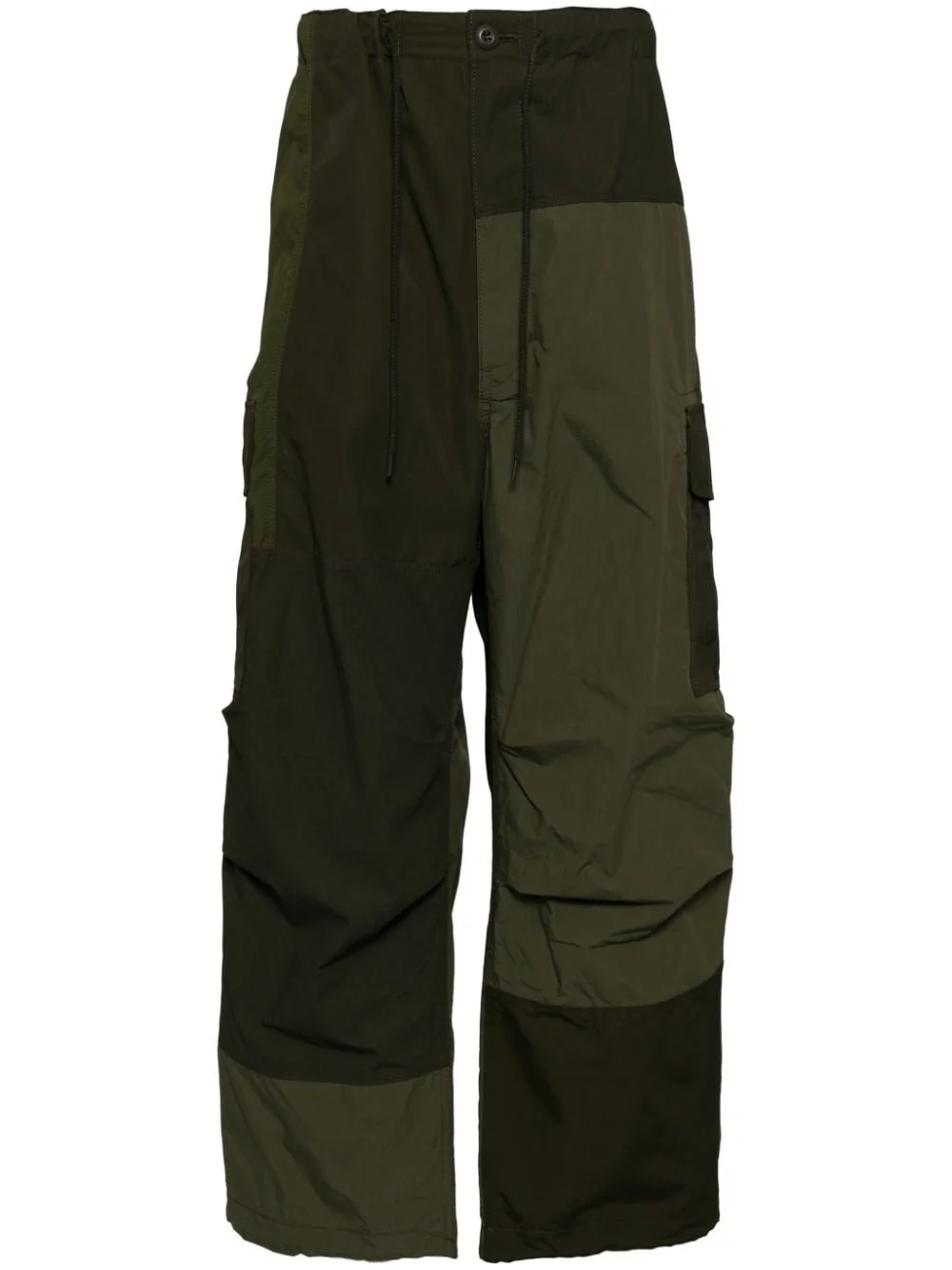 wide-leg trousers Highlights - Khaki green - Ripstop texture - Patchwork design - Front button and zip fastening - Elasticated drawstring waistband - Belt loops - Two side slash pockets - Two rear flap pockets - Drawstring hem - Straight leg Imported Composition Cotton 40%, Nylon 35%, Modacrylic 25%