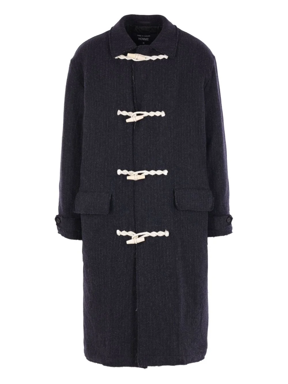 pinstripe toggle coat Highlights - Blue - Pinstripe pattern - Toggle fastening - Front pockets - Buttoned cuffs - Rear vent Imported Composition Wool 100% Washing instructions Read Manufacturer Guidelines