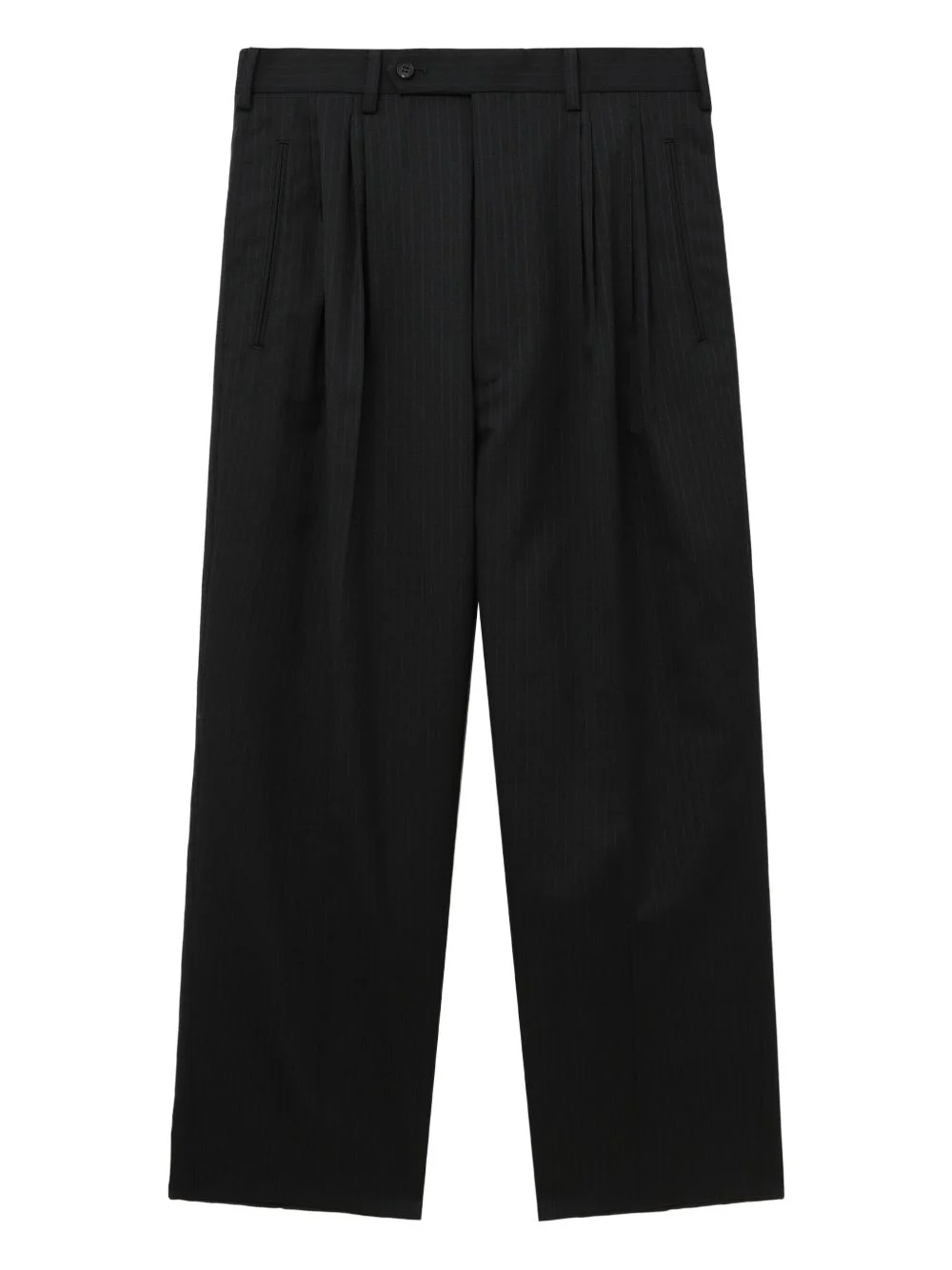 pleated pinstripe trousers Highlights - Black - Pinstripe pattern - Pleated front - Side pockets Imported Composition Wool 50%, Polyester 50% Washing instructions Read Manufacturer Guidelines