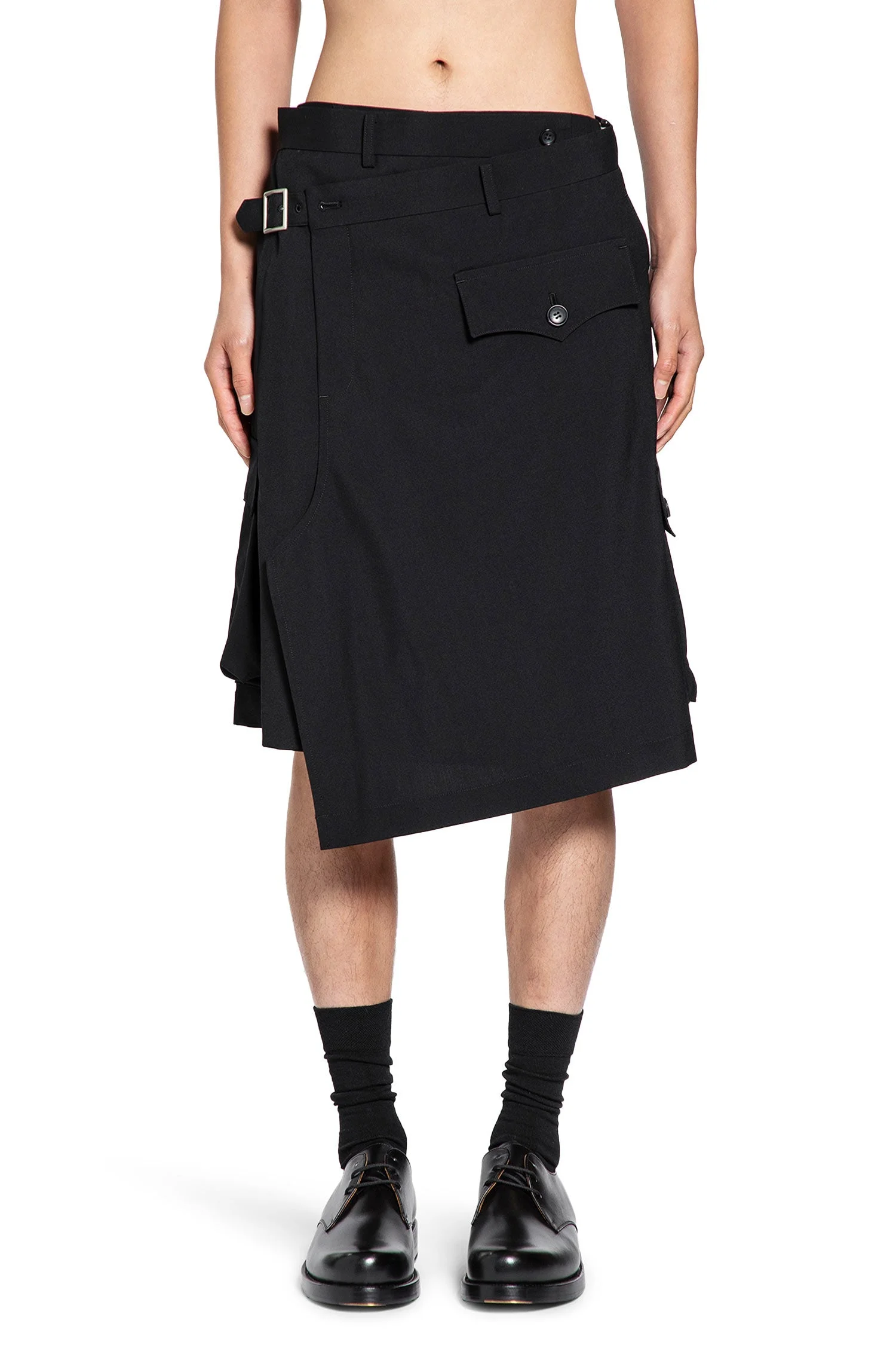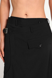 DESCRIPTION - Black - Wool twill - Overlay - Mid waist - Side cargo pockets - Buckle closure - Belt loops - Asymmetric cut DETAILS - Made in: Japan - Composition: 100% Wool - Model code: PPP023W25 1 - Item ID: 9780302152022 SIZE & FIT Model wears size S Model Height 188 cm Chest 88 cm Waist 69 cm Hips 88 cm