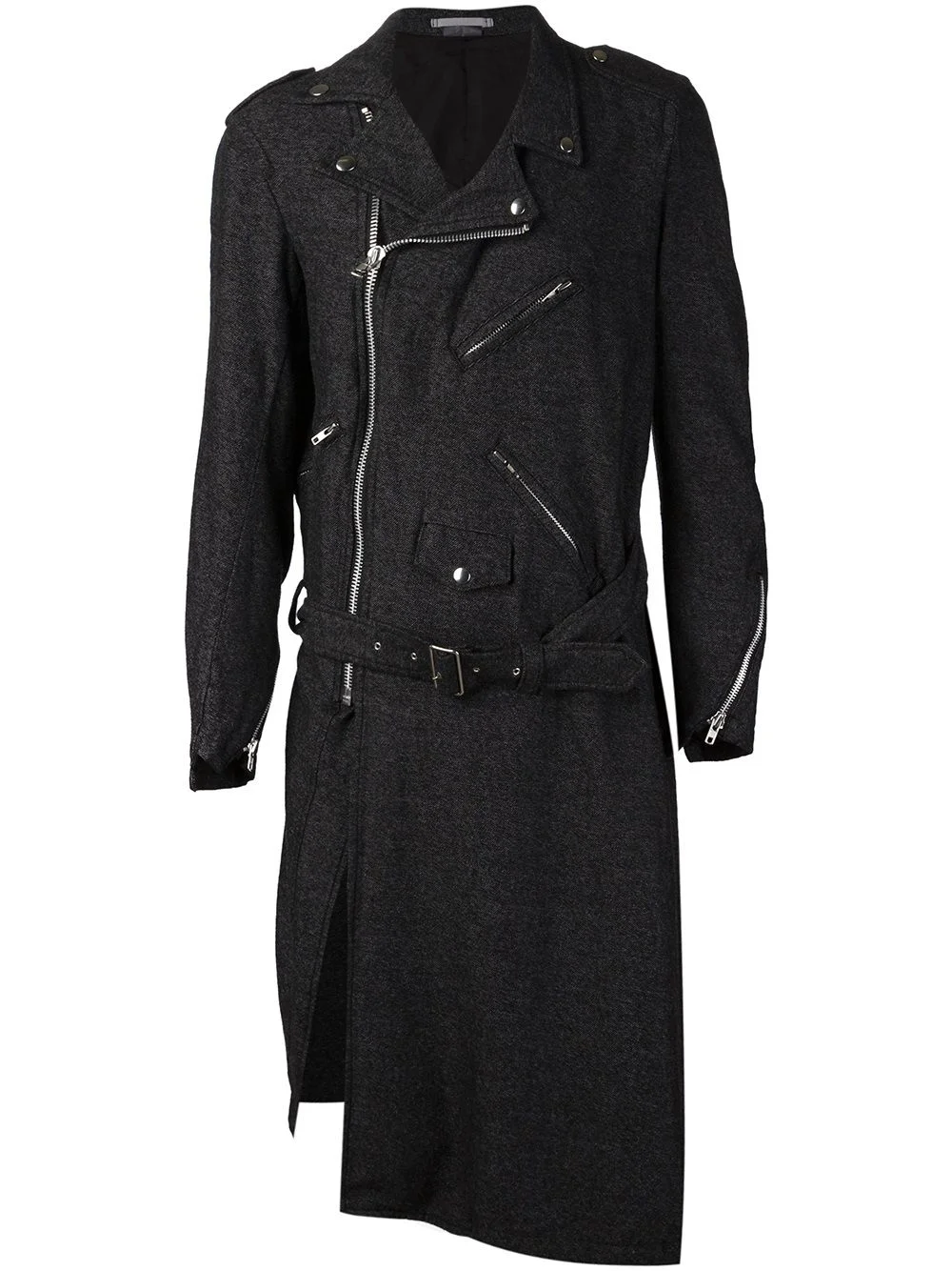 biker coat Black wool-linen-cotton blend biker coat from Comme Des Garcons Homme Plus. Imported Composition Wool 74%, Cotton 10%, Linen/Flax 10%, Nylon 6% SIZE & FIT Model measurements Height 6 ft 1 in(1.85 m) Bust/Chest 33.46 in(85 cm) Hips 36.61 in(93 cm) Waist 29.92 in(76 cm) Washing instructions Specialist Cleaning