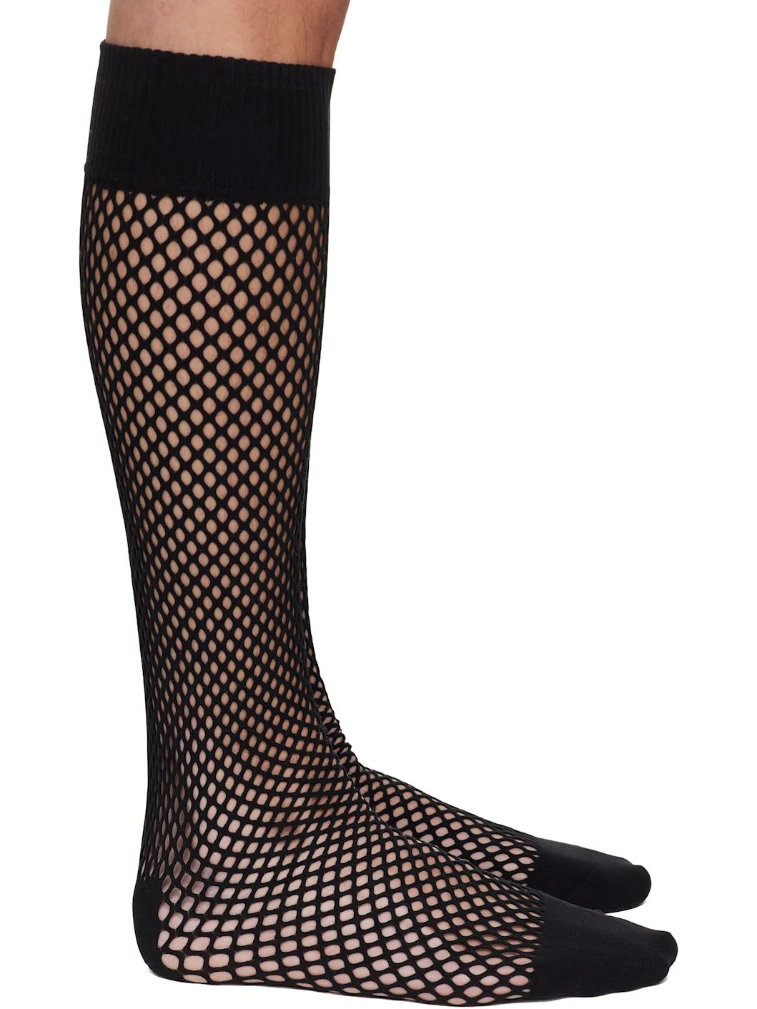 Pair of knee-high stretch nylon mesh socks. Rib-knit cuffs. Supplier color: Black 93% nylon, 7% polyurethane. Made in Japan 261347M220001