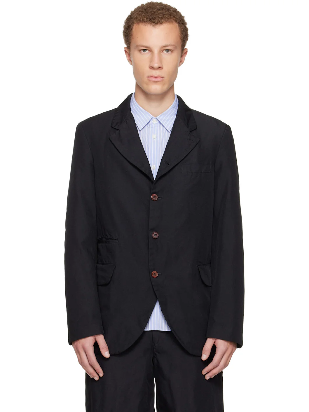 Twill blazer. · Spread collar · Button closure · Welt and flap pockets at front · Padded shoulders · Buttoned surgeon's cuffs · Twin vents at back hem · Welt pockets at interior · Partial satin lining Supplier color: Black 100% polyester. Made in Japan 252347M195002