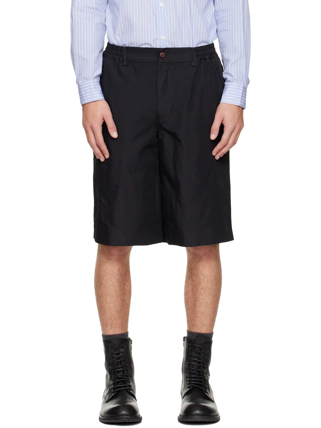 Twill shorts. · Belt loops · Partially elasticized waistband · Four-pocket styling · Zip fly Supplier color: Black 100% polyester. Made in Japan 252347M193004