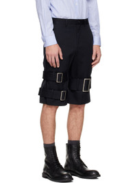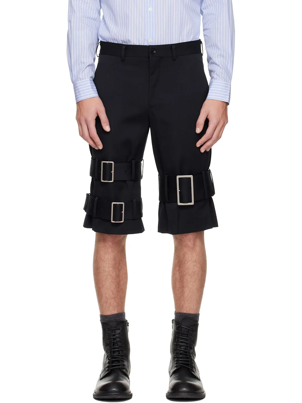 Plain-woven wool-blend shorts. · Belt loops · Four-pocket styling · Zip fly · Belt loops and pin-buckle fastenings at legs · Partial satin lining Supplier color: Black Body: 70% wool, 30% cotton. Lining: 100% cupra. Made in Japan 252347M193002