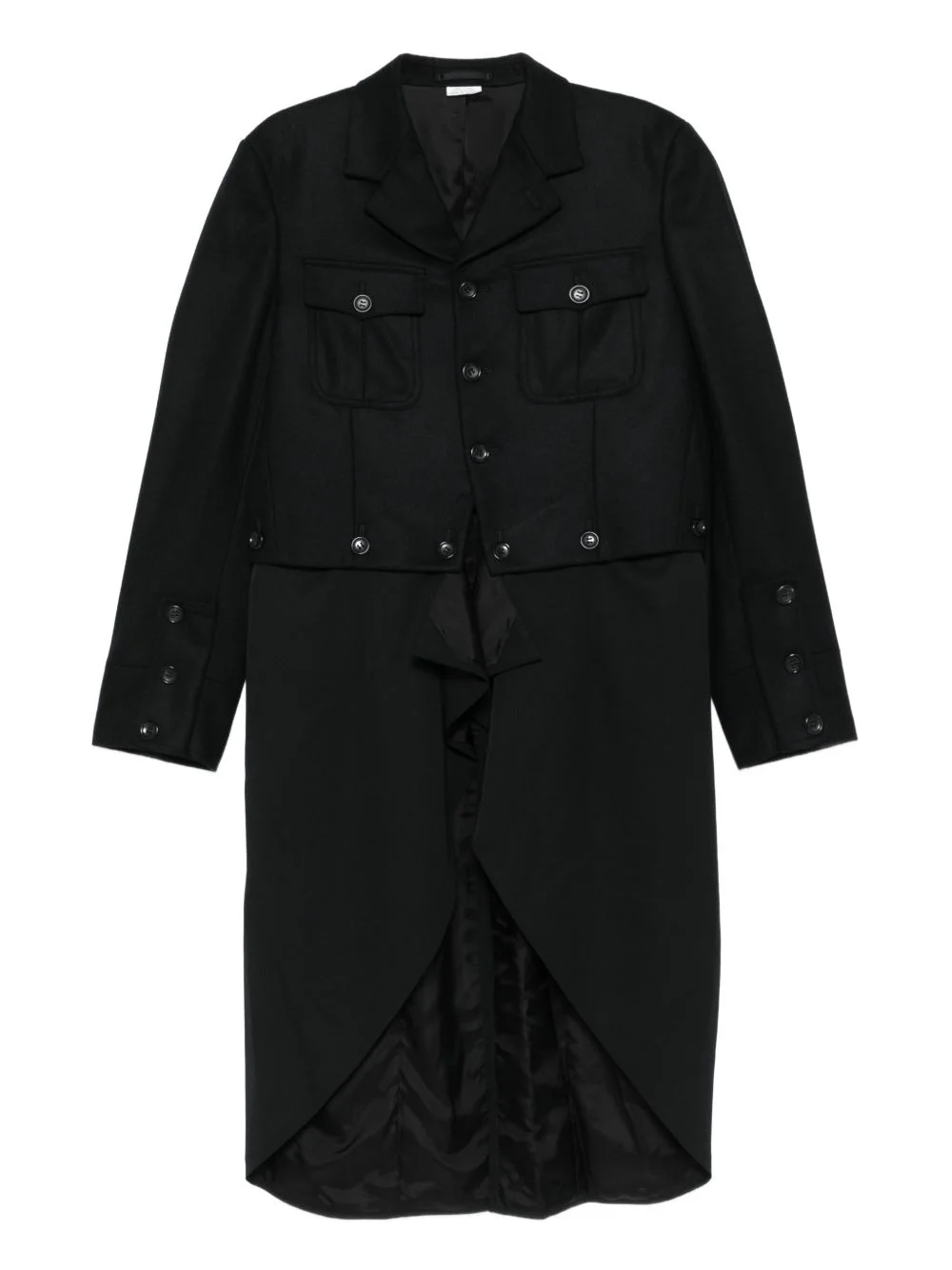 button-fastening flap-pocket coat Highlights - Black - Flap pockets - Button fastening - Long sleeves - Tailcoat design Imported Composition Fabric 100% Washing instructions Read Manufacturer Guidelines