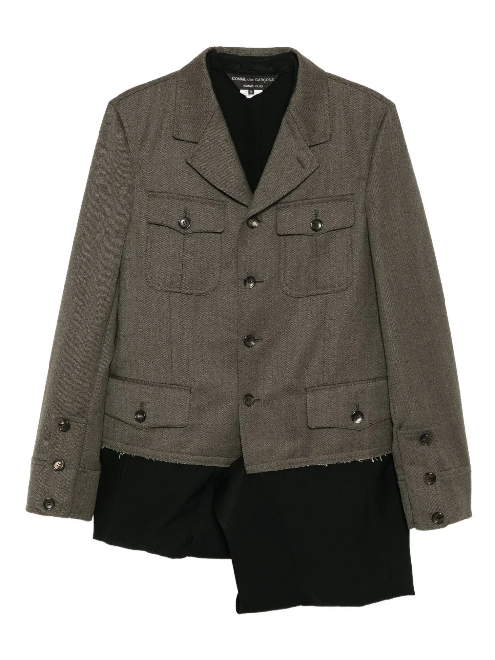 button-up layered jacket Highlights - Black - Chest flap pocket - Buttoned cuffs - Raw hem Imported Composition Outer: Polyester 100% Wool 100% SIZE & FIT Model measurements Height 6 ft 2 in(1.88 m) Bust/Chest 34.25 in(87 cm) Hips 34.64 in(88 cm) Waist 26.77 in(68 cm) FittingInformation Designed for a regular fit, allowing for a comfortably loose fit throughout the body Made from a midweight non-stretch fabric Washing instructions Dry Clean Only