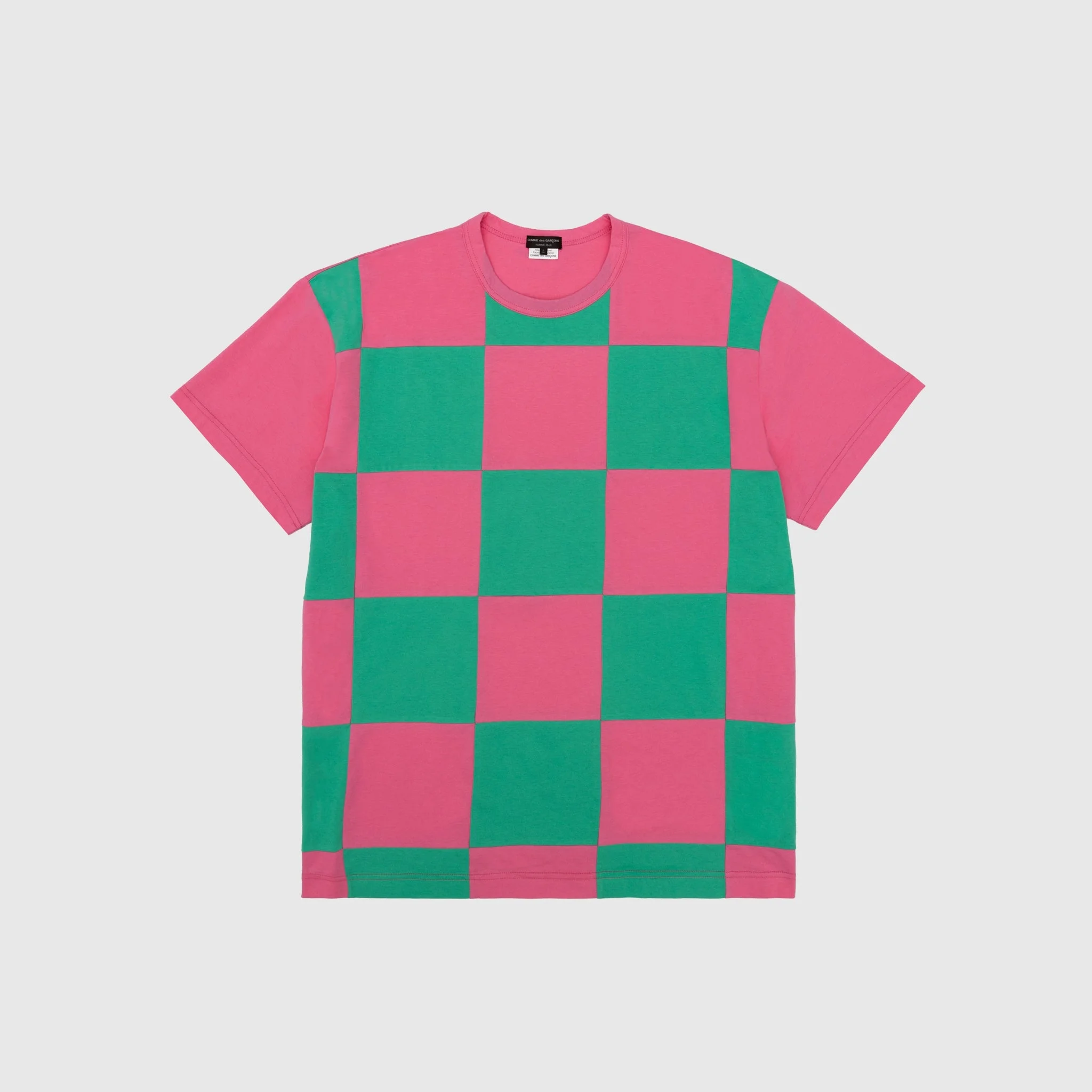 - PO-T005-051-1 - Pink/Green - 100% Cotton - Checkered constructed front - Ribbed collar - Dropped shoulder - Relaxed fit - SS25 - Made in Japan
