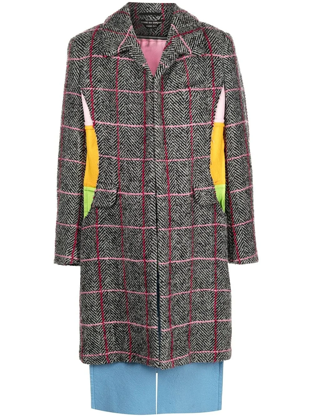 colour-block panelled blazer grey/multicolour check pattern colour-block panelled design cut-out detailing layered details two side flap pockets notched collar long sleeves long length straight hem Imported Composition Polyester 100% SIZE & FIT Model measurements Height 6 ft 2 in(1.87 m) Bust/Chest 38.18 in(97 cm) Hips 35.82 in(91 cm) Waist 29.92 in(76 cm) Washing instructions Dry Clean Only