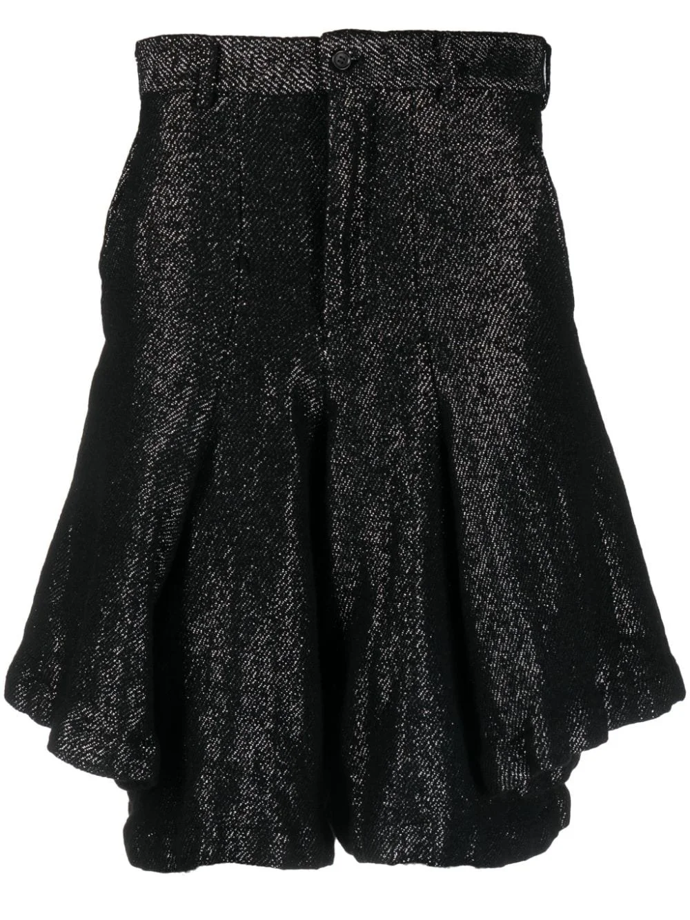 draped-detail lurex shorts Highlights - Black - Wool blend - Lurex detailing - High-shine detailing - Draped panel detail - Mid-rise - Concealed fly and button fastening - Two side slit pockets - Rear flap pocket - Rear welt pocket - Wide leg - Knee-length - Straight hem Imported Composition Wool 80%, Polyester 11%, Nylon 9% SIZE & FIT Model measurements Height 6 ft 1 in(1.86 m) Bust/Chest 36.61 in(93 cm) Hips 37 in(94 cm) Waist 28.74 in(73 cm) FittingInformation Designed with a wide leg, offering a loose and roomy fit Made from a midweight non-stretch fabric This piece fits true to size – take your usual size