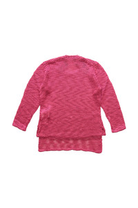 The Comme Des Garcons Homme Plus Pink Crewneck Sweater in a lightweight knit features a droptail hem. DETAILS - Lightweight knit - Crewneck - Droptail hem Sizing: - True to size Material: 100% Acrylic Made in Japan Product codes: - SKU: ESSX/CHP/SS25/PON0080511/Pink/S - UPC: 3607936273637