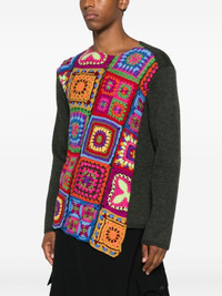 crochet-panel wool sweater Highlights - Dark grey - Wool - Crew neck - Patchwork design - Granny square pattern - Crochet detailing Imported Composition Wool 90%, Acrylic 10% SIZE & FIT Model measurements Height 6 ft 1 in(1.85 m) Bust/Chest 38.58 in(98 cm) Hips 37 in(94 cm) Waist 30.31 in(77 cm) Washing instructions Read Manufacturer Guidelines