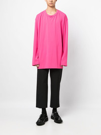 cut-out detailing long-sleeve T-shirt Highlights - Fuchsia pink - Cut-out detailing - Slouch body - Crew neck - Drop shoulder - Extra-long sleeves - Straight hem Imported Composition Polyester 100% SIZE & FIT Model measurements Height 6 ft 2 in(1.87 m) Bust/Chest 31.49 in(80 cm) Hips 37.79 in(96 cm) Waist 27.95 in(71 cm) FittingInformation Designed to be unstructured, offering a loose fit throughout Made from a midweight non-stretch fabric, this piece offers minimal elasticity when worn This piece fits true to size – take your usual size Washing instructions Hand Wash