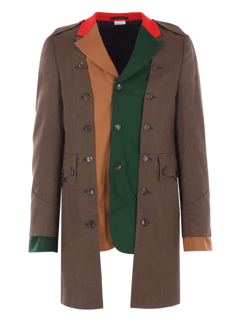 deconstructed button jacket Highlights - Brown, green and multicolour - Wool - Decorative buttons - Notch lapel - Asymmetric hem - Buttons fastening Imported Composition Outer: Wool 100% Lining: Cupro 100% Washing instructions Read Manufacturer Guidelines