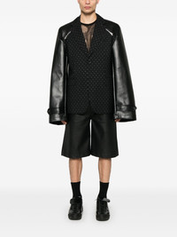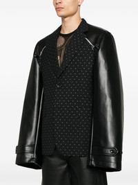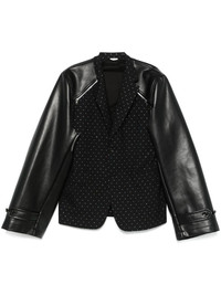 detachable-panels blazer Highlights - Black - Front button fastening - Internal pocket - American rear vent - Chest welt pocket Imported Composition Outer: Polyurethane 100%, Wool 99%, Polyester 1% Lining: Cotton 100% SIZE & FIT Model measurements Height 6 ft 1 in(1.85 m) Bust/Chest 35.82 in(91 cm) Hips 37.79 in(96 cm) Waist 29.13 in(74 cm) FittingInformation Designed for a slim fit, offering a comfortable fit that sits just away from the body The internal shoulder pads offer a structured shape Made from a midweight non-stretch fabric