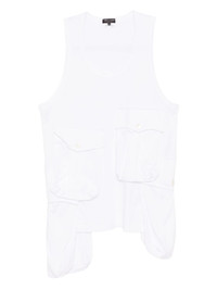 flap pocket vest Highlights - White - Round neck - Sleeveless Imported Composition Cotton 100% SIZE & FIT Model measurements Height 6 ft 2 in(1.87 m) Bust/Chest 33.07 in(84 cm) Hips 35.43 in(90 cm) Waist 26.77 in(68 cm) FittingInformation Designed to be unstructured, offering a loose fit throughout Made from a midweight non-stretch fabric, this piece offers minimal elasticity when worn Washing instructions Hand Wash