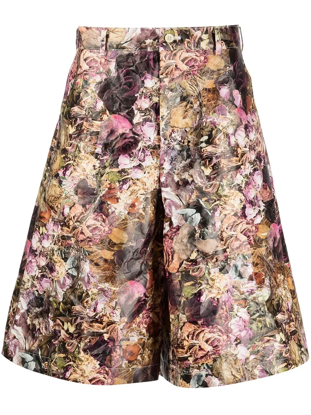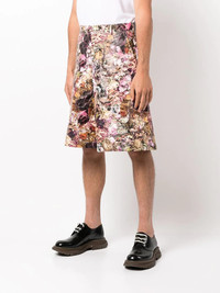 Brown/multicolour graphic-print tailored shorts from COMME DES GARÇONS HOMME PLUS featuring all-over graphic print, high waist, button fly fastening, belt loops, two side slit pockets, rear flap pocket, rear welt pocket and knee-length. Highlights - Brown/multicolour - All-over graphic print - High waist - Button fly fastening - Belt loops - Two side slit pockets - Rear flap pocket - Rear welt pocket - Knee-length Imported Composition Polyethylene 100%