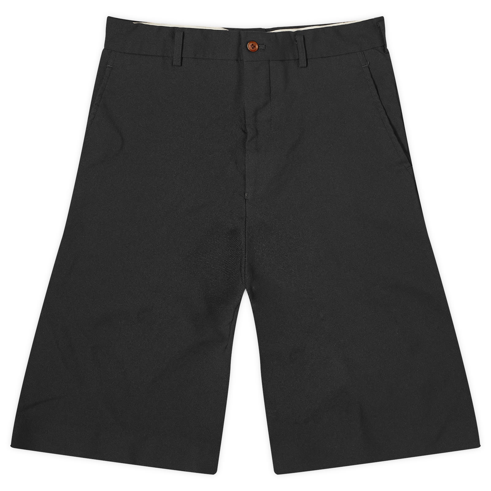 Another of Comme des Garçons diffusion lines, Homme Plus focuses on playful proportions and avant-garde style elements. The Gabardine Short is the perfect example, made from premium wool and tailored for a flared cut. The knee-length design is kept minimal, allowing for versatile styling for a range of occasions. We highly recommend. - 100% Wool - Button and Zip Closure - 2 Side Pockets - Belt Loops - Tailored Cut
